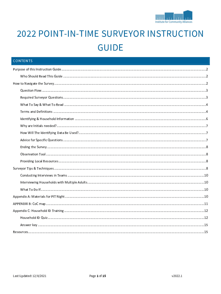 2022 POINTINTIME SURVEYOR INSTRUCTION GUIDE CONTENTS Purpose of this Instruction Guide ................................................................................................................................................................
