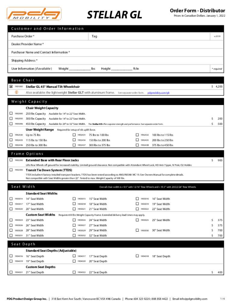 Order Form DistributorSTELLAR GLP rices in Canadian Dollars. January 1, 2022Customer and Order Information Purchase Order *v.0119Dealer/Provider Name * Purchaser Name and Contact Information * Shipping