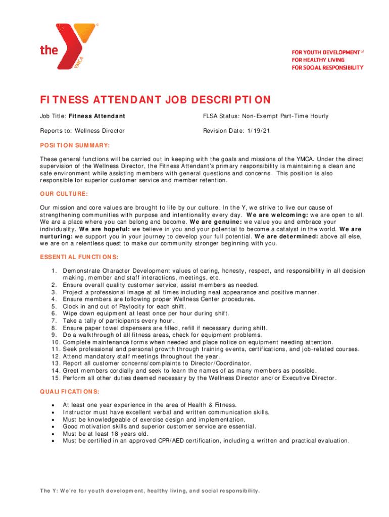 Get the free fitness attendant job description - Harrisburg Area YMCA
