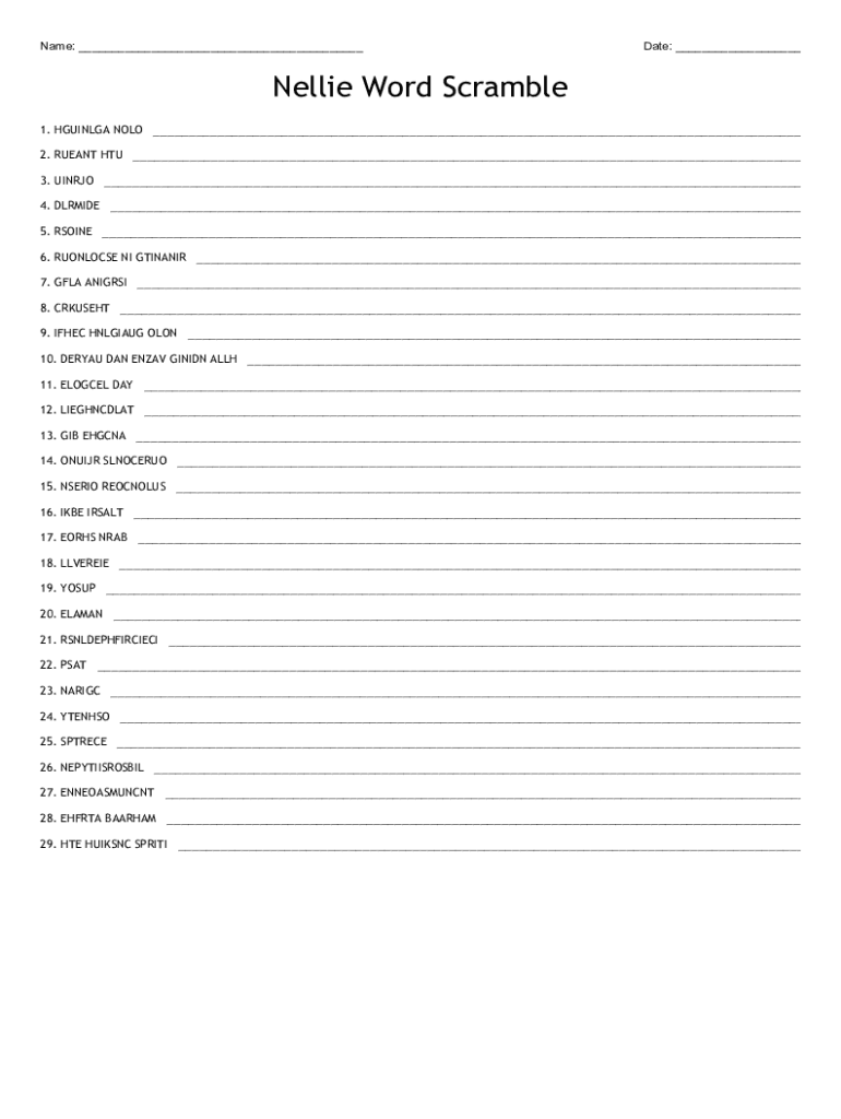 Nellie Word Scramble deve essere compilato dai partecipanti al gioco.