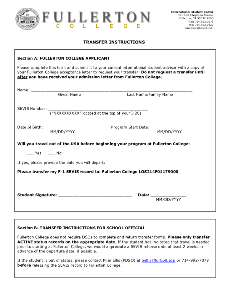 email:isc@fullcoll.transfer INSTRUCTIONSSection A: FULLERTON COLLEGE APPLICANT