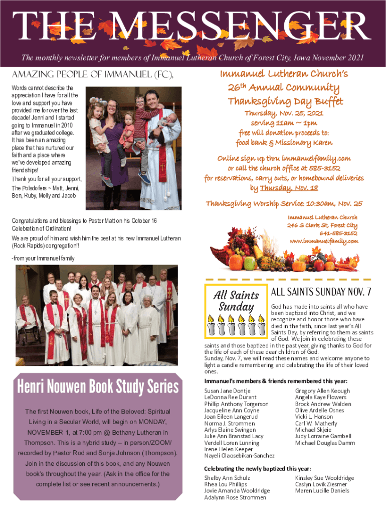 THE MESSENGER The monthly newsletter for members of Immanuel Lutheran Church of Forest City, Iowa November 2021Amazing people of Immanuel (FC), Words cannot describe the appreciation I have for all