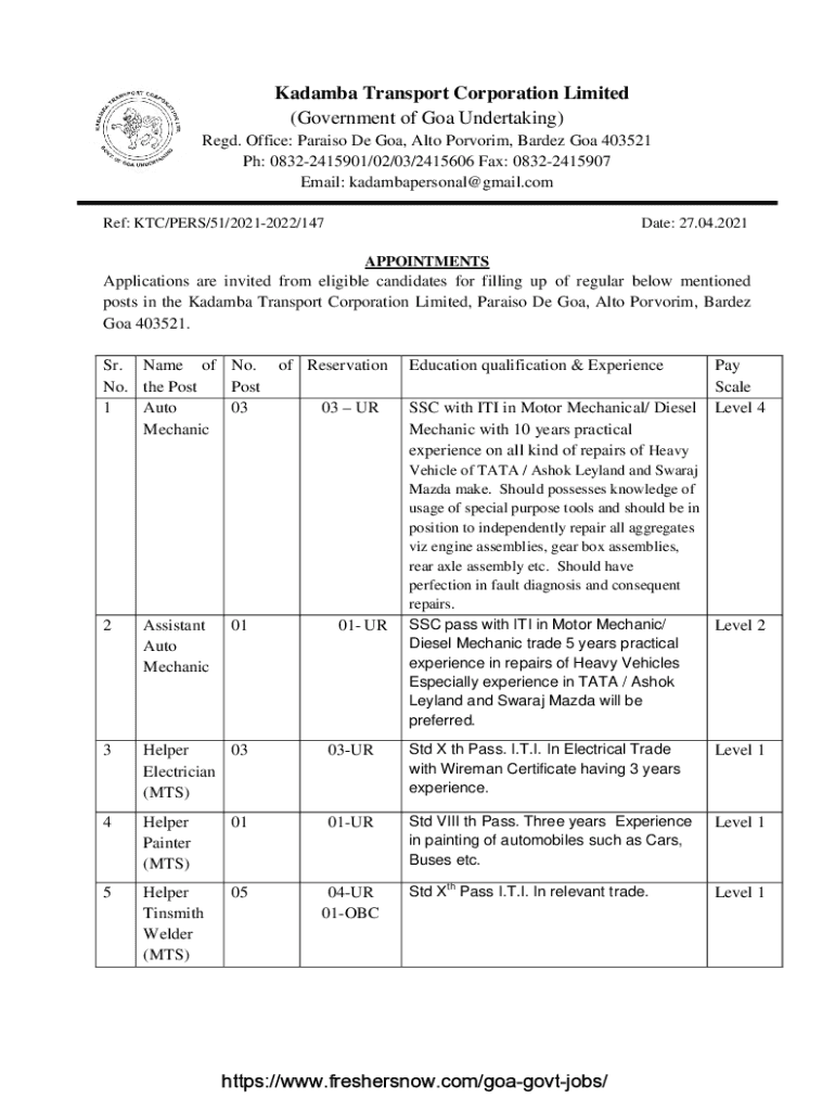 Get the free Kadamba Transport Corporation Limited