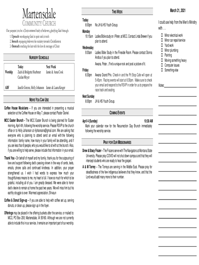 Martens dale Our purpose is to be a Christ centered body of believers, glorifying God through: 1. Preach: worshiping God in spirit and in truth 2. In reach: equipping believers for ministry towards