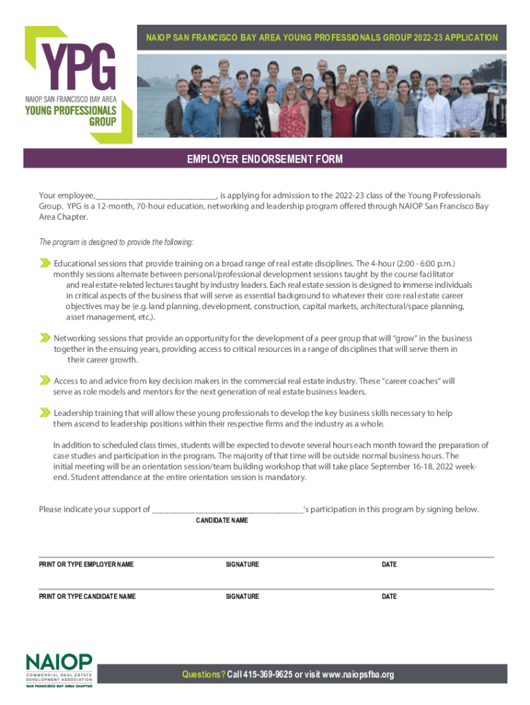 NATION SAN FRANCISCO BAY AREA YOUNG PROFESSIONALS GROUP 202223 APPLICATIONEMPLOYER ENDORSEMENT FORM Your employee, ___, is applying for admission to the 202223 class of the Young Professionals Group.