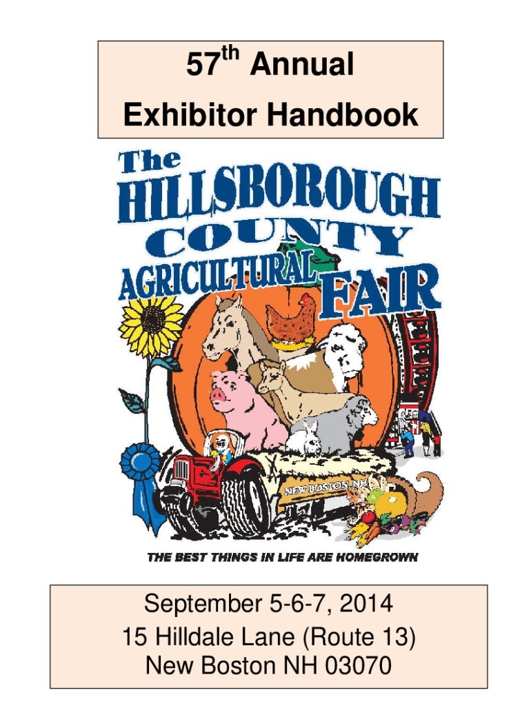 Th57 AnnualExhibitor Handbook September 567, 2014 15 Hill dale Lane (Route 13) New Boston NH 030700TABLE OF CONTENTSPagePageAdmission & General Information2Open DepartmentsDirectors & Superintendents3Grange53Map