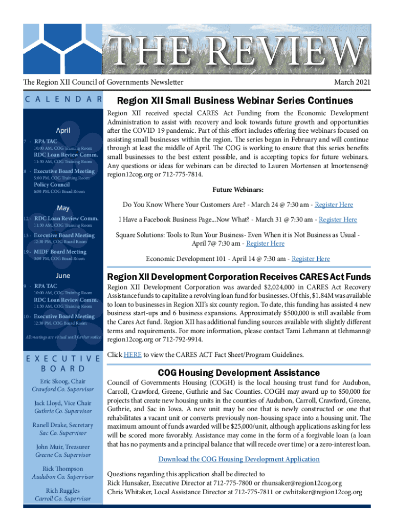 The Review Region XII Council of Governments Newsletter A L E N D A April