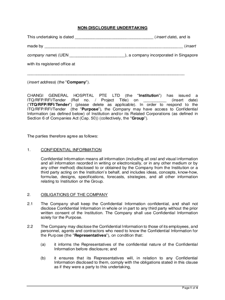 NONDISCLOSURE UNDERTAKING This undertaking is dated ___ (insert date), and is made by ___ (insert company name) (MEN ___), a company incorporated in Singapore with its registered office at ___ (insert