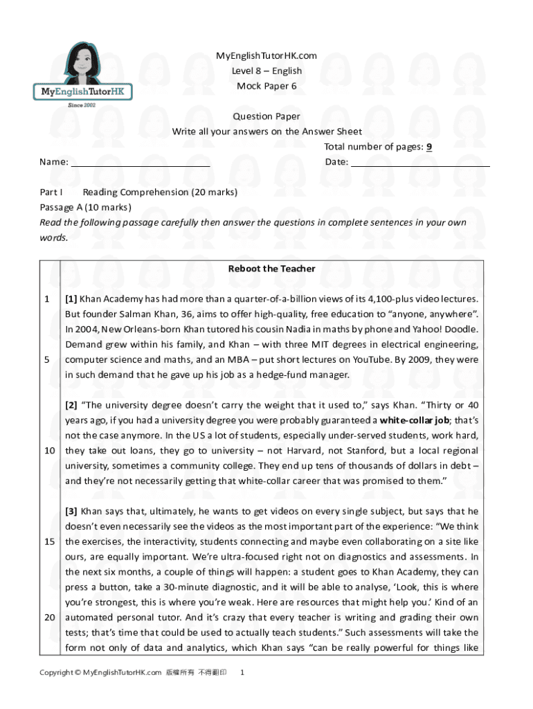 Get the free English Mock Paper 1 Answer Sheet Total number of pages: 3 ...