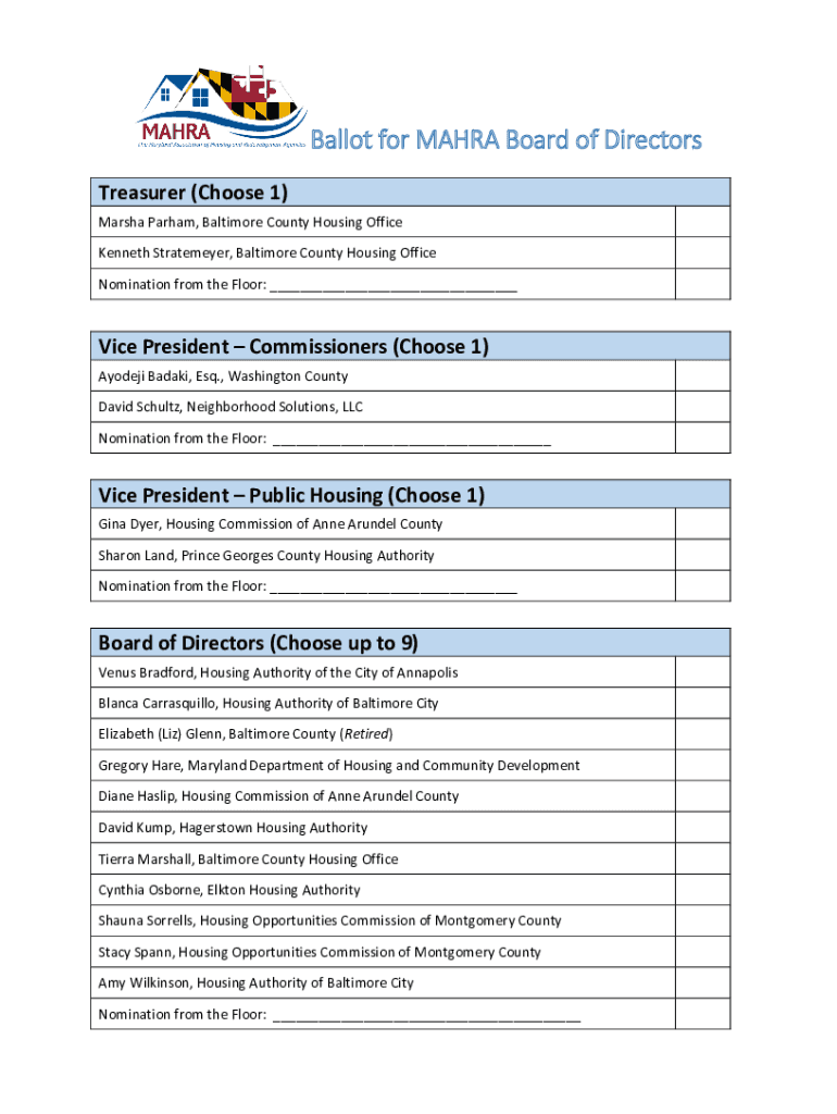 Get the free Ballot for MAHRA Board of Directors