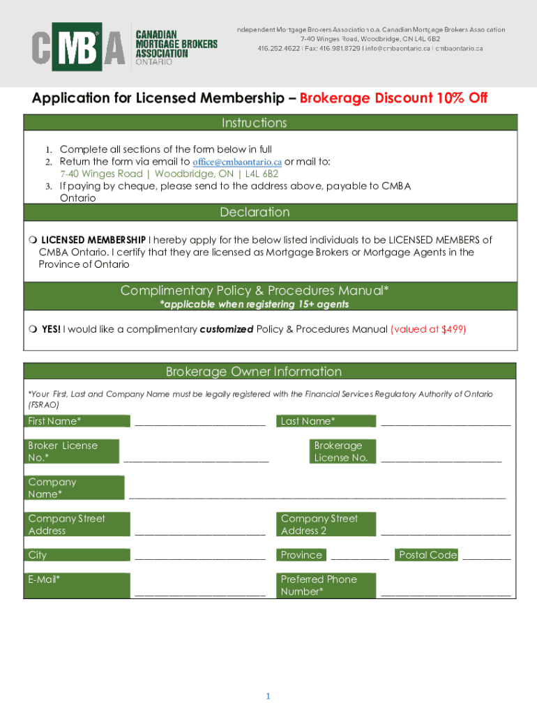 Application for Licensed Membership Brokerage Discount 10% Off