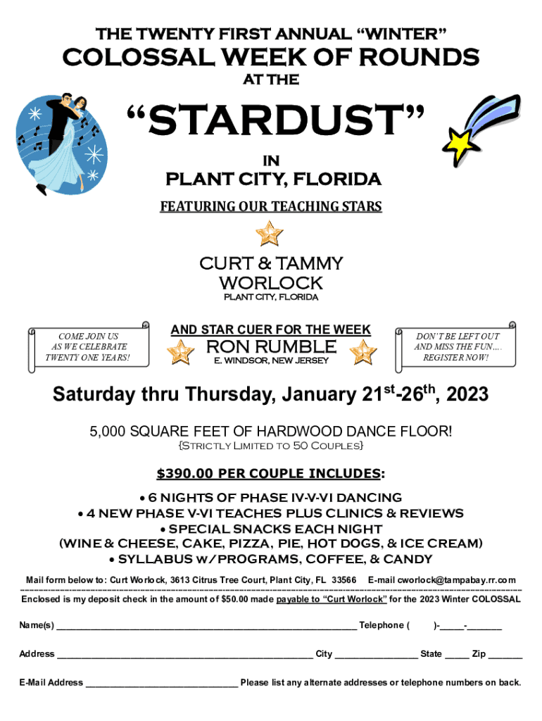THE TWENTY FIRST ANNUAL INTERCOLONIAL WEEK OF ROUNDS AT STARDUST IMPLANT CITY, FLORIDA FEATURING OUR TEACHING STARBURST & TAMMY WARLOCK PLANT CITY, FLORIDACOME JOIN US AS WE CELEBRATE TWENTY ONE YEARS!AND
