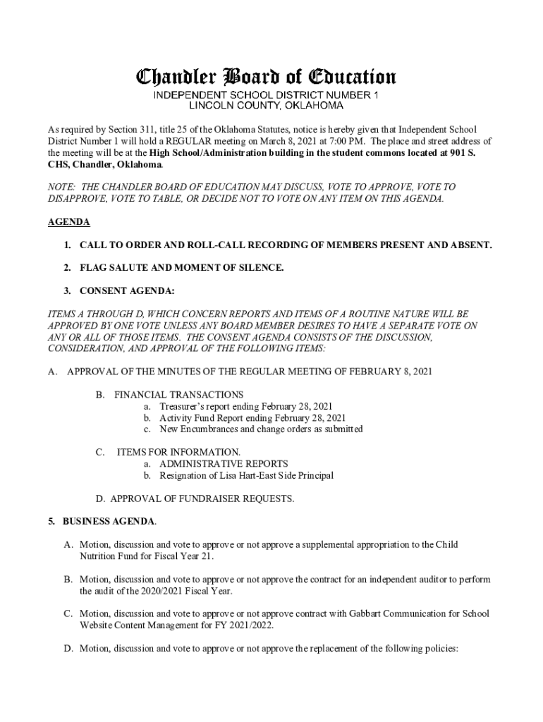 Get the free agenda for - board of education - Perkins-Tryon Public Schools