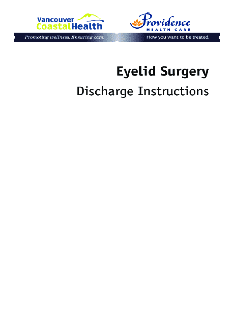 Get the free Eye Lid Surgery - Discharge instructions - Vancouver Coastal Health. Eye Lid Surgery...