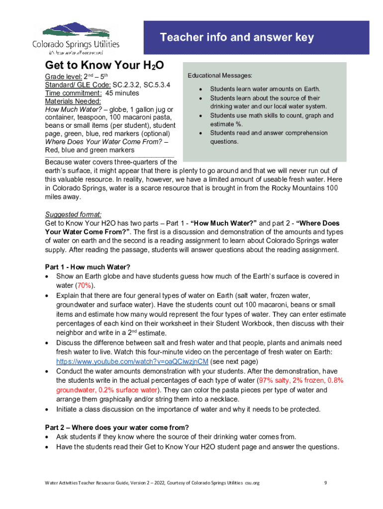 Get the free Get to Know Your H2O - Teacher info and answer key