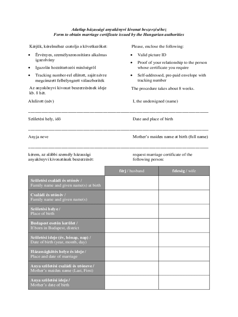 Get the free Form to obtain marriage certificate issued by the Hungarian authorities.pdf