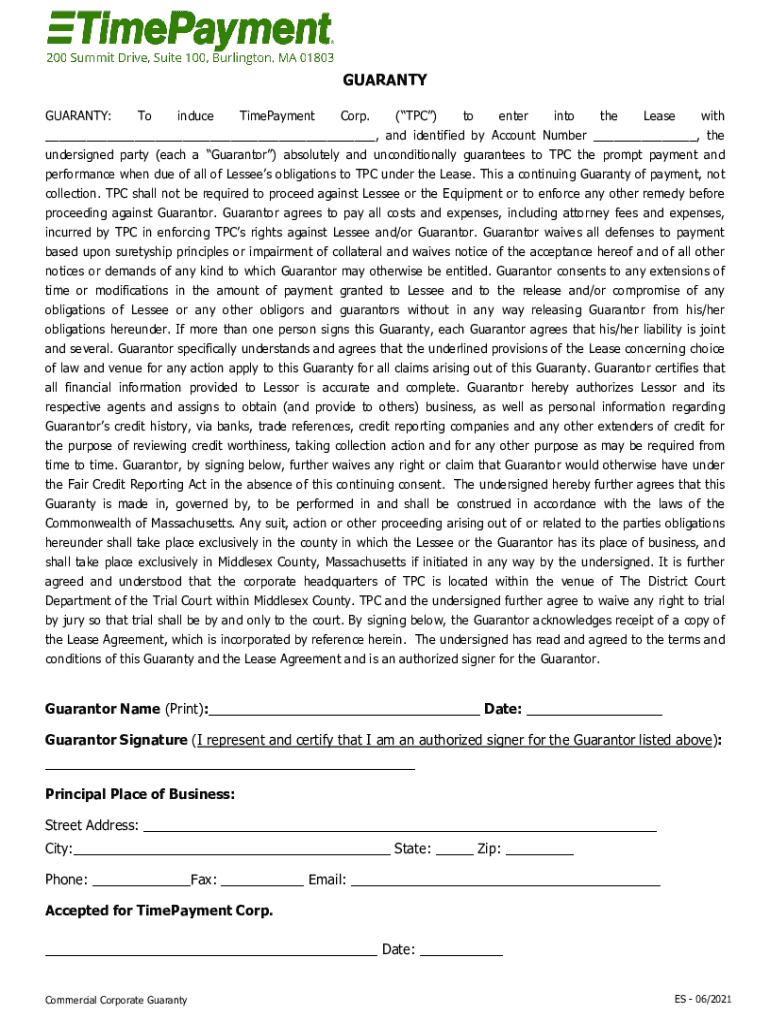 GUARANTY: To induce Repayment Corp. (TPC) to enter into the Lease with ___, and identified by Account Number ___, the undersigned party (each a Guarantor) absolutely and unconditionally guarantees
