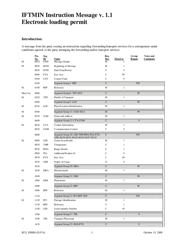 ITIN Instruction Message v. 1.1 Electronic loading permit Introduction: A message from the party issuing an instruction regarding forwarding/transport services for a consignment under conditions agreed,