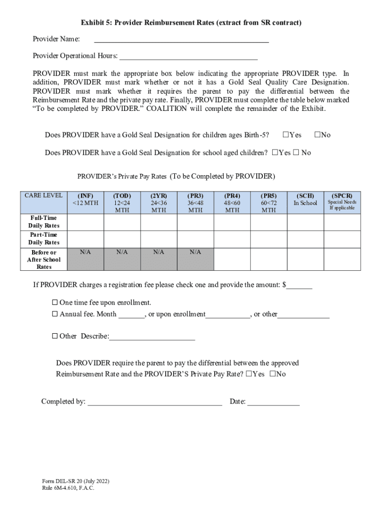 Exhibit 5: Provider Reimbursement Rates (extract from SR contract) Provider Name: Provider Operational Hours: ___ PROVIDER must mark the appropriate box below indicating the appropriate PROVIDER type.