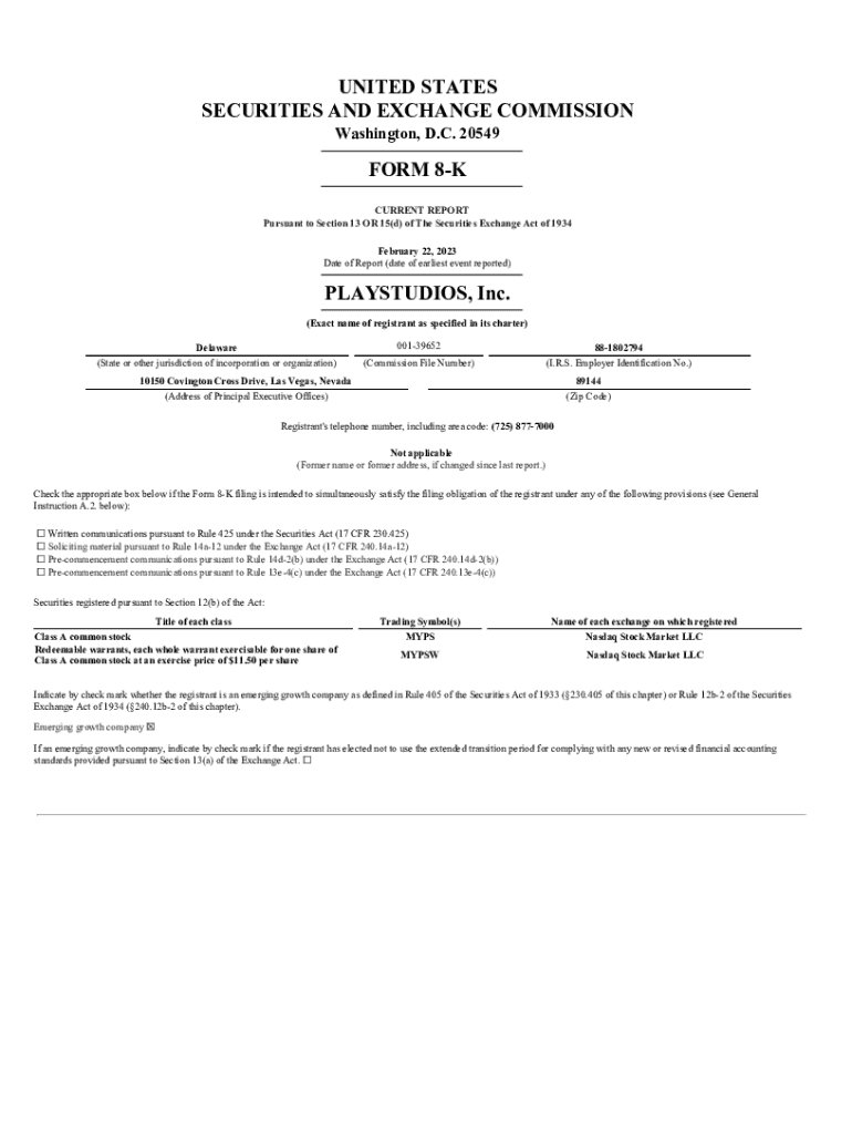 UNITED STATES SECURITIES AND EXCHANGE COMMISSION Washington, D.C. 20549FORM 8K CURRENT REPORT Pursuant to Section 13 OR 15(d) of The Securities Exchange Act of 1934 February 22, 2023, Date of Report