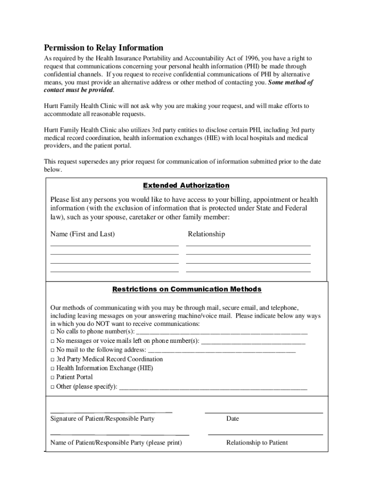 Permission to Relay Information As required by the Health Insurance Portability and Accountability Act of 1996, you have a right to request that communications concerning your personal health information
