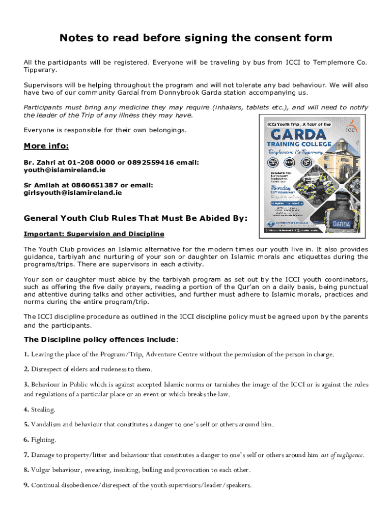 Get the free Notes to read before signing the consent form - Islam Ireland