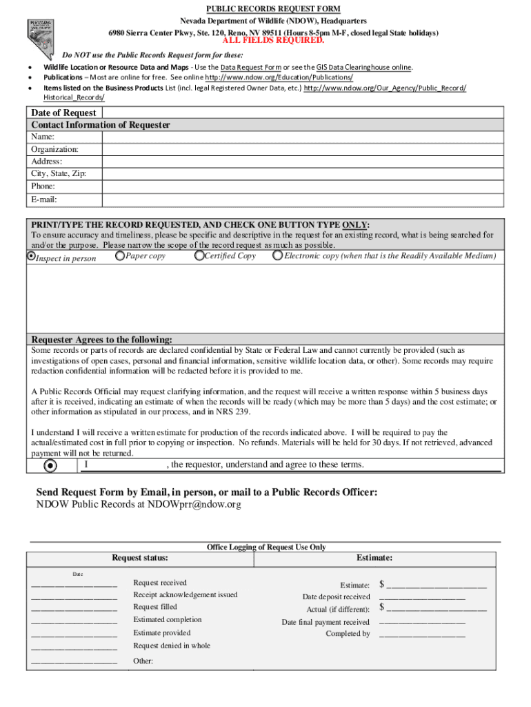 Get the free NDOW Public Records Request Form