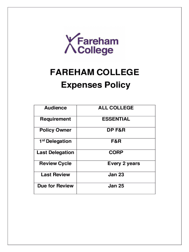 Audience ALL COLLEGERequirementESSENTIALPolicy Owner DP F&R1st DelegationF&RLast DelegationCORPReview CycleEvery 2 Yaroslavl Review Jan 23Due for Review Jan 25Scope