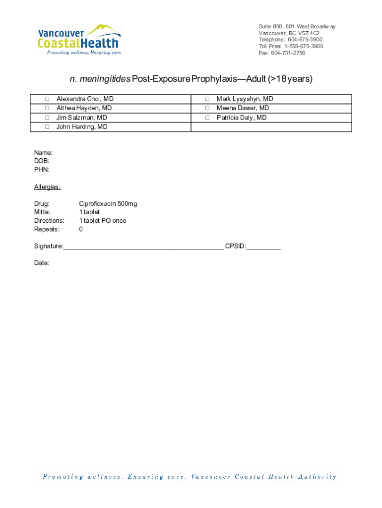 How to fill out n meningitidespost-exposure prophylaxisadult 18