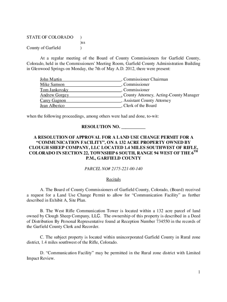 Get the free STATE OF COLORADO ) )ss County of Garfield ) At ... - Granicus