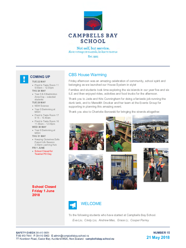 COMING UP TUE 22 MAY Plant to Taste Room 11 9.00am 12.30pm THU 24 MAY Year 5 & 6 Badminton Zone Days selected students TUE 29 MAY NSW Science Year 5 Swimming at FISH Plant to Taste Room 17 9.15 10.40am