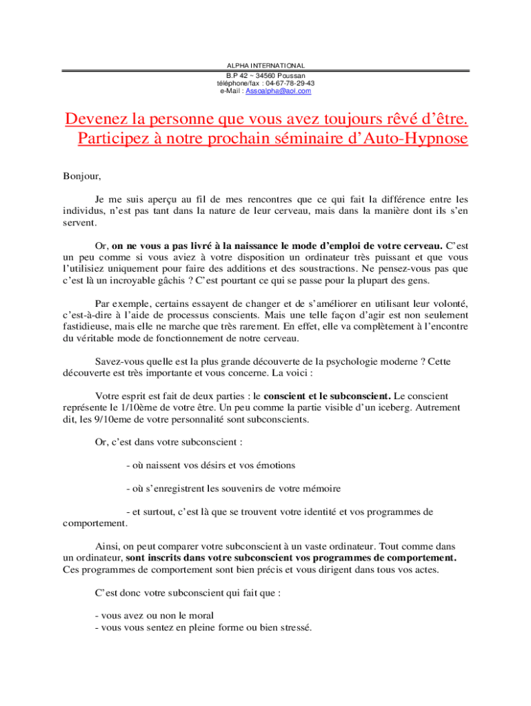 Comment remplir les techniques d'hypnose en?