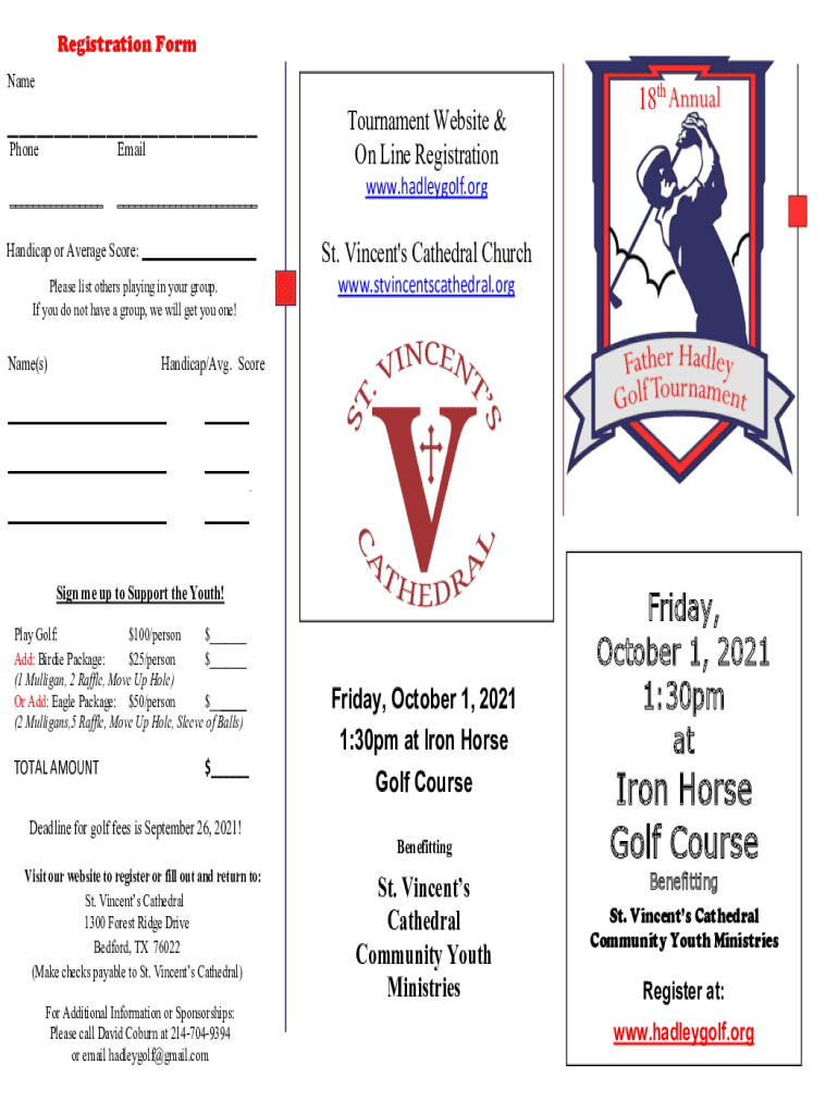 Registration Form Name ___ Phone Email ______Handicap or Average Score: ___ Please list others playing in your group. If you do not have a group, we will get you one! Name(s)Tournament Website & online