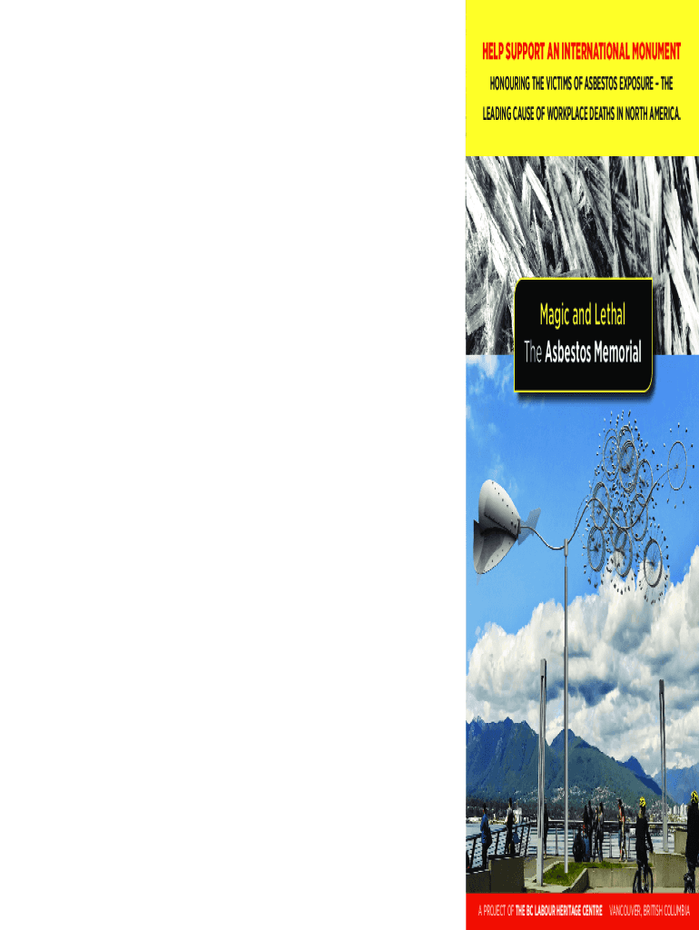 HELP SUPPORT AN INTERNATIONAL MONUMENT Honoring THE VICTIMS OF ASBESTOS EXPOSURE THE LEADING CAUSE OF WORKPLACE DEATHS IN NORTH AMERICA. The BC Labor Heritage Center invites you to help make history.