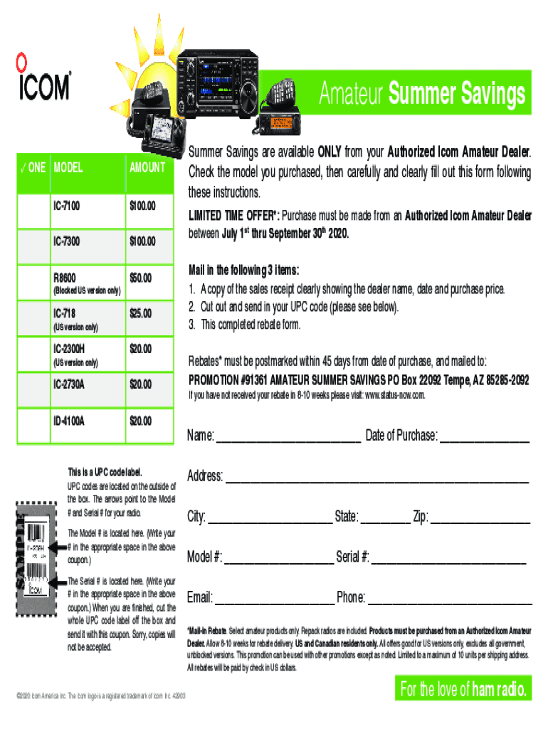 Amateur Summer Savings ONEMODELAMOUNTIC$7100100.00IC$7300100.00R$860050.00IC$71825.00IC2300H$20.00IC2730A$20.00ID4100A$20.00(Blocked US version only) (US version only) (US version only)This is a UPC