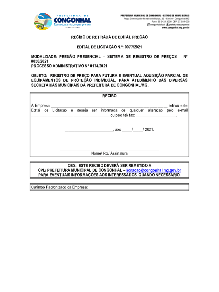 Obtenha o gratuito RECIBO DE RETIRADA DE EDITAL PELA INTERNET No ...