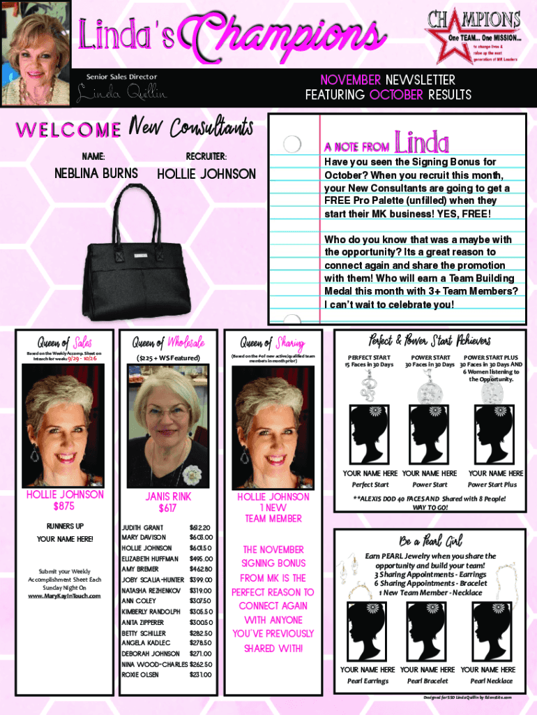 Featuring OCTOBER Results Senior Sales Director Linda Quilling E LC O M E New Consultants