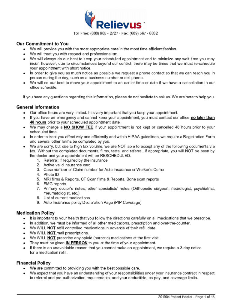 To fill out Relievus Pain Management doctors, healthcare providers need to provide detailed information about the patient's pain history, treatment plan, and progress.