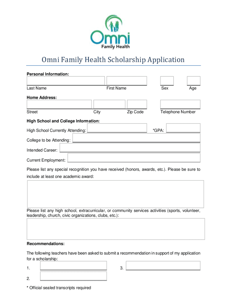 Get the free Omni Family Health Scholarship Application