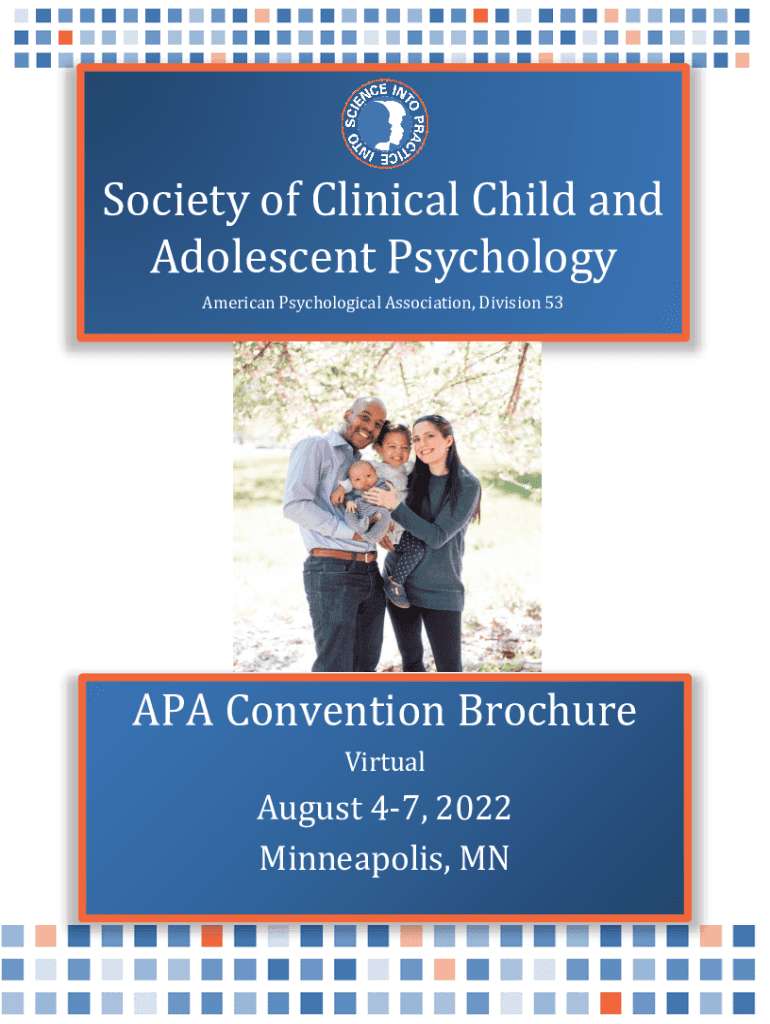 Society of Clinical Child and Adolescent Psychology American Psychological Association, Division 53APA Convention Brochure Virtual August 47, 2022 Minneapolis, Mutable of ContentsWelcome to Virtual