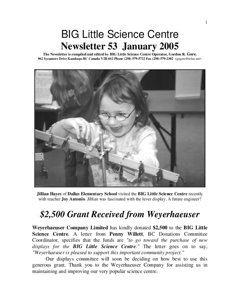 1BIG Little Science Center Newsletter 53 January 2005 The Newsletter is compiled and edited by BIG Little Science Center Operator, Gordon R. Gore. 962 Sycamore Drive Balloons BC Canada V2B 6S2 Phone
