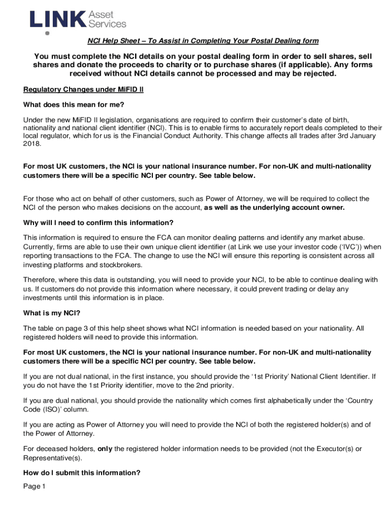 NCI Help Sheet To Assist in Completing Your Postal Dealing form must complete the NCI details on your postal dealing form in order to sell shares, sell shares and donate the proceeds to charity or