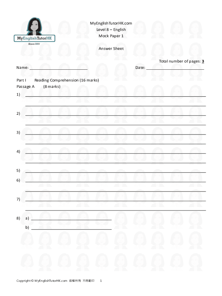Get the free English Mock Paper 5 Answer Sheet Total number of pages:4 ...
