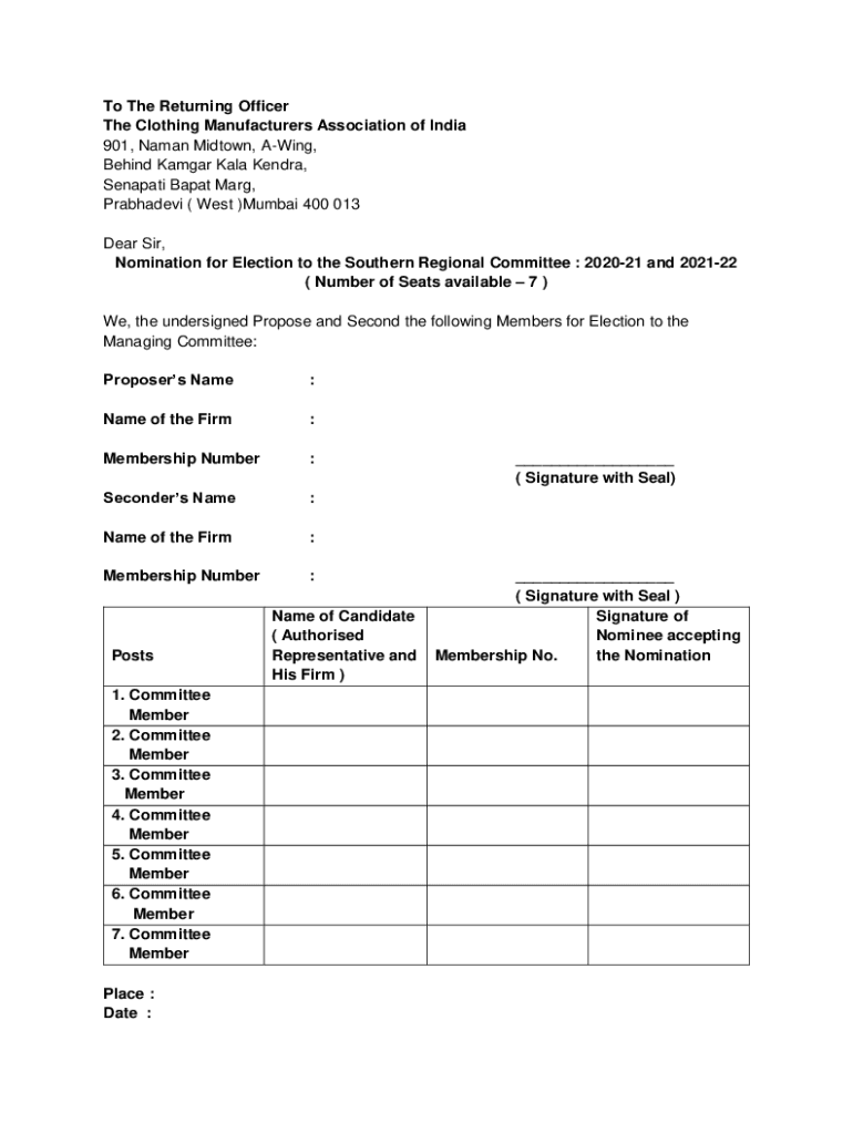 Nomination For Election To is not the form you're looking for?Search for another form here.