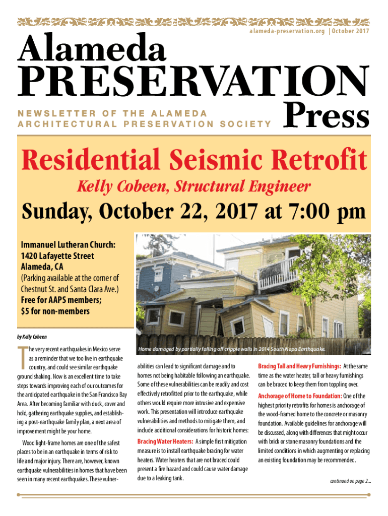 Alamedapreservation.org | October 2017Residential Seismic Retrofit