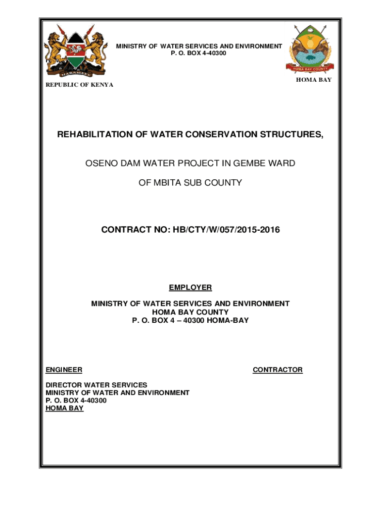 COUNTYREPUBLIC OF KENYAREHABILITATION OF WATER CONSERVATION STRUCTURES, OPEN DAM WATER PROJECT IN GAME WARD