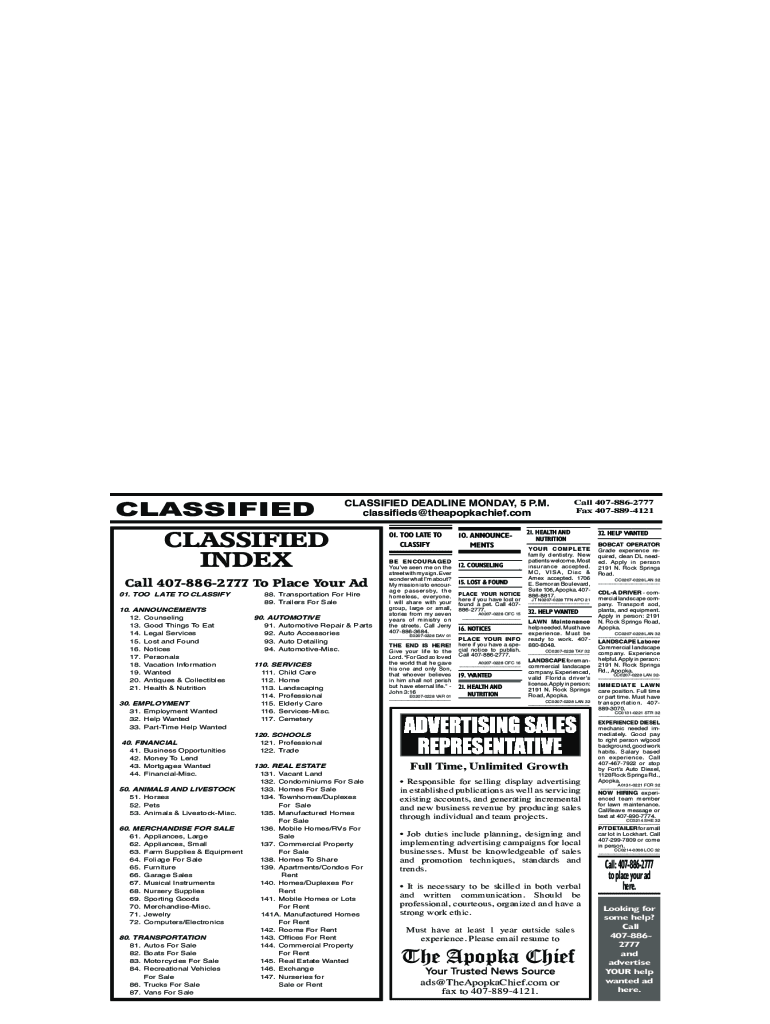 The Apopka Chief, February 14, 2020, Page 6DThe Apopka Chief PUBLIC NOTICESPhone: 4078862777 Fax: 4078894121 view online theapopkachief.com oridapublicnotices. Colleges CAN BE FOUND ON PAGES 2D6DNOTICE