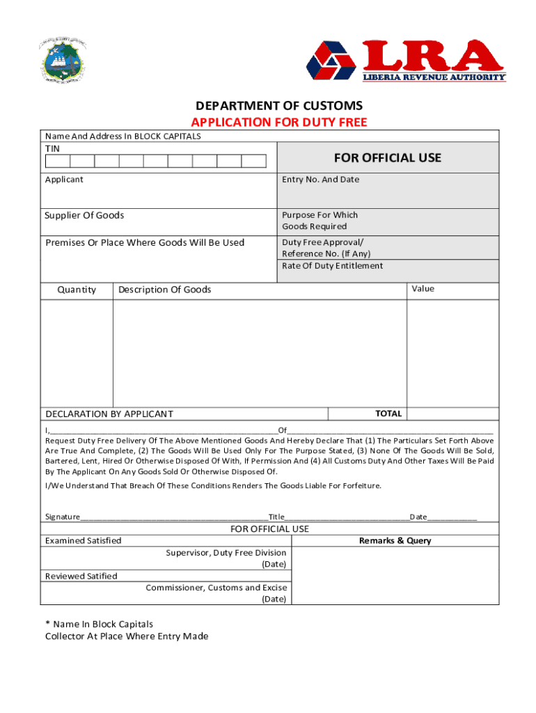 Get the department of customs - application for duty free