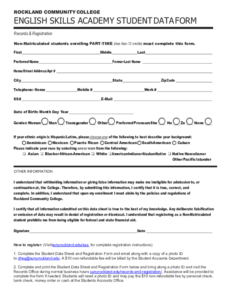 ROCKLAND COMMUNITY COLLEGEENGLISH SKILLS ACADEMY STUDENT DATA FORM