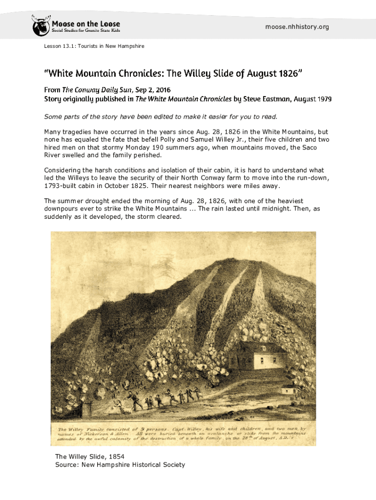 Moose.history.org Lesson 13.1: Tourists in New HampshireSome parts of the story have been edited to make it easier for you to read. Many tragedies have occurred in the years since Aug. 28, 1826 in